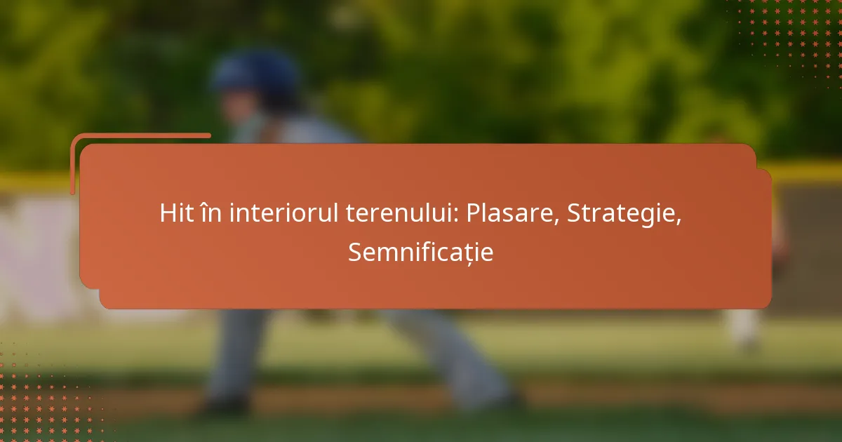Hits-urile în interiorul terenului sunt cruciale în baseball, deoarece pot schimba momentum-ul unui joc și îmbunătăți strategia ofensivă a unei echipe. Aceste hit-uri apar atunci când un bătător ajunge cu succes pe bază, în ciuda faptului că mingea a fost lovită în interiorul terenului, demonstrând o combinație de viteză, plasare și conștientizare a situației.